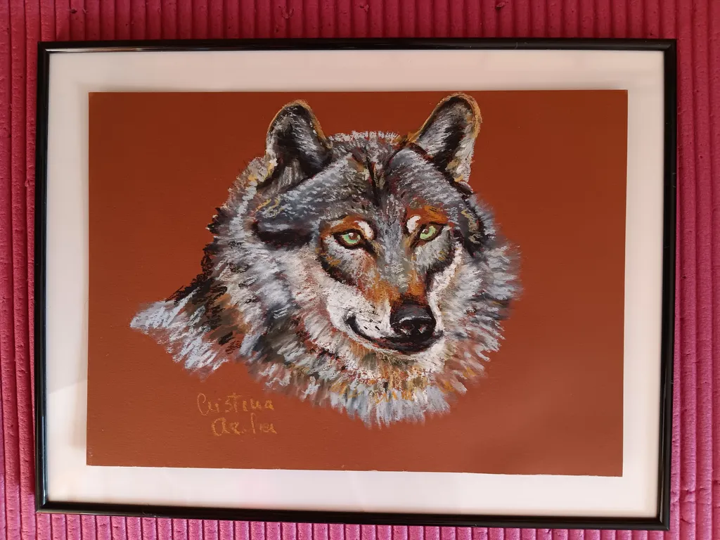 Der Wolf hält inne, gefangen in einem Moment der Stille.